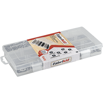 Includes: 1 storage box, 50 screws in three sizes (3.8 cm, 2.5 cm and 6.3 cm) and 50 nails in three sizes (3.8 cm, 2.5 cm and 6.3 cm)