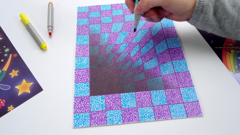 Choose an illustration and then use your electronic Pixelo pen to make dotted patterns and give them a 3D effect. There are plenty of illusions for you to recreate with Pixelo! You can also use your pen like a traditional marker to put the finishing touches on your drawing.